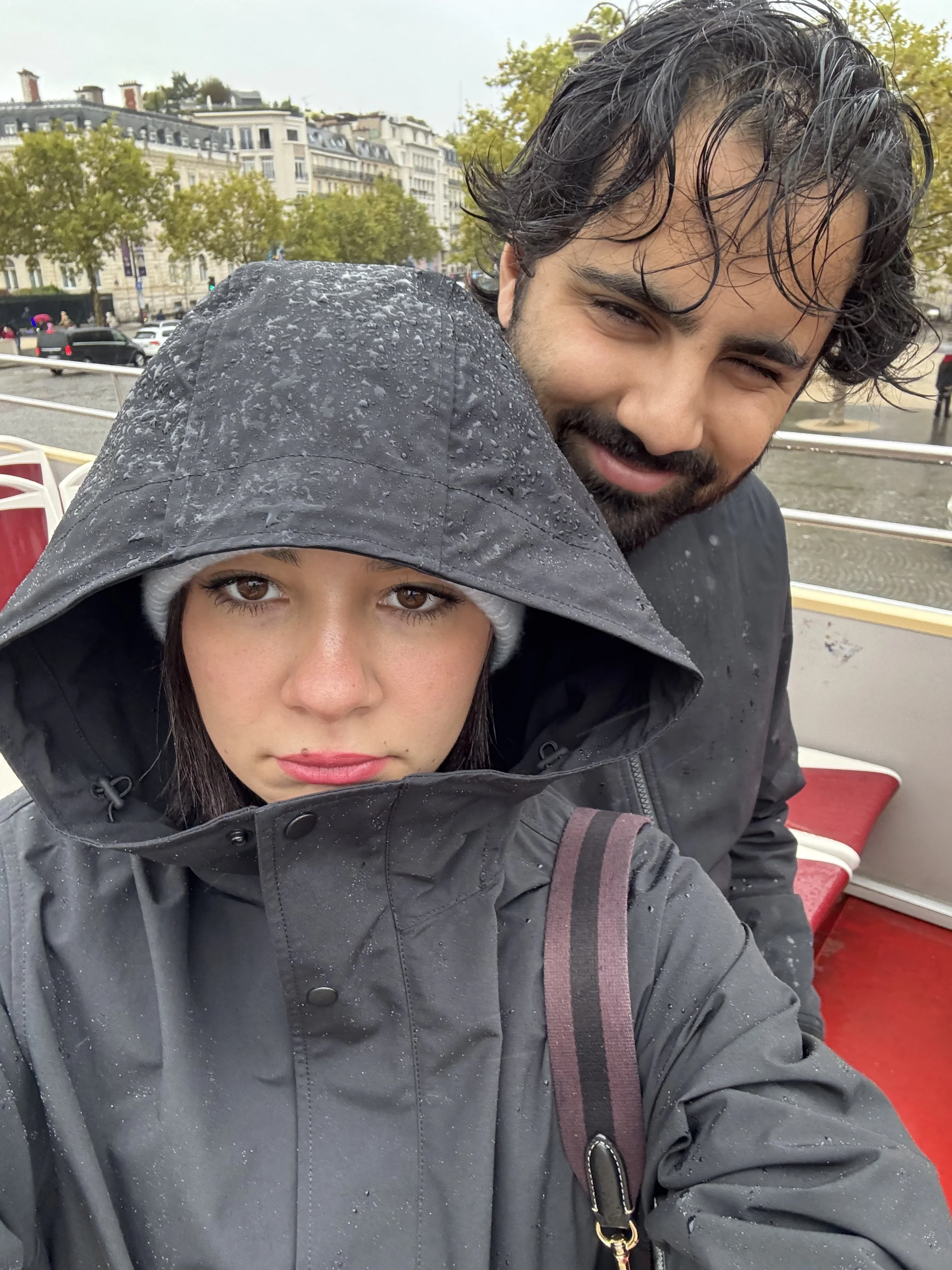Pujan and Amira when it’s raining and they’re on a tour bus in Paris